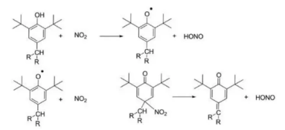 NOx fumigation yellowing reaction of Hindered phenolic antioxidant