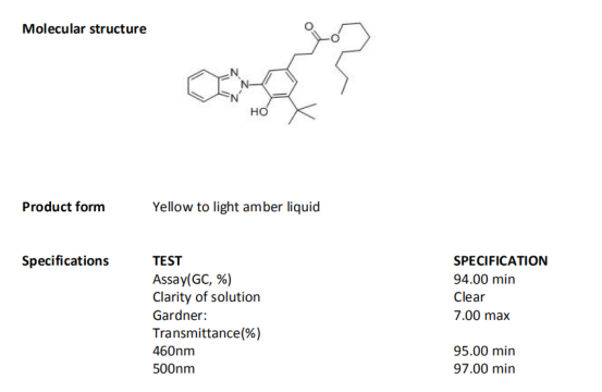 The benzotriazole UV absorber which is a kind of 2-(2-hydroxyphenyl)-2H- benzotriazole compounds, mainly absorbs ultraviolet rays with wavelength between 300-385 nm, which not only has high absorption efficiency, but also has good stability. Because of its good compatibility with synthetic materials, low volatility, low toxicity and light color, benzotriazole uv absorber has a high market demand at home and abroad, especially in acid coatings. Its synergistic effect with HALS also improve the market prospect of benzotriazole uv absorber.